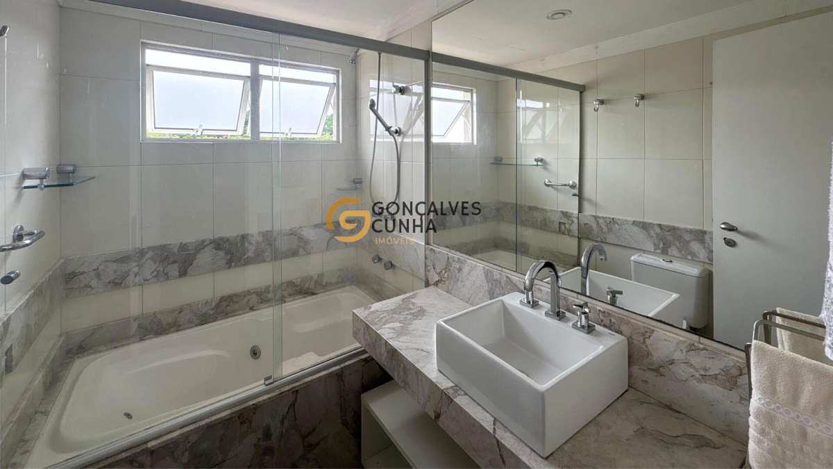 Banheiro social moderno e amplo, com ótima ventilação e iluminação natural